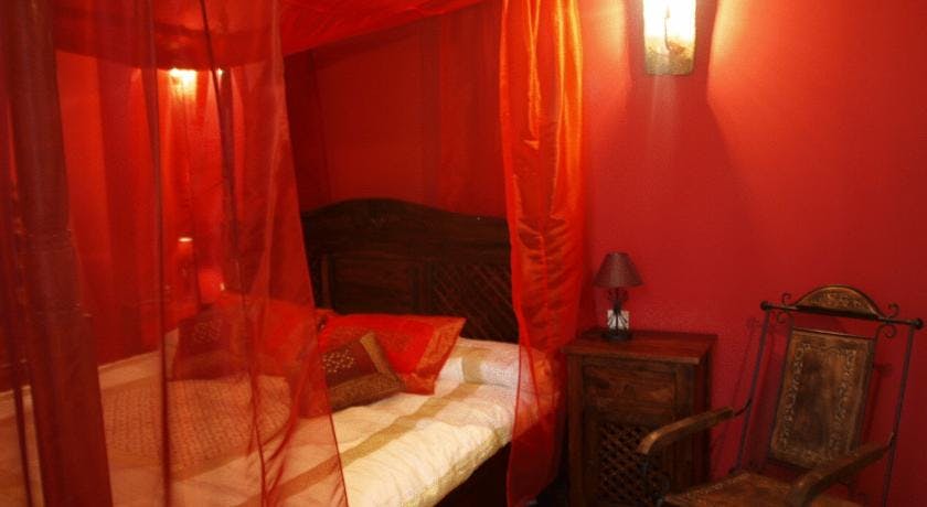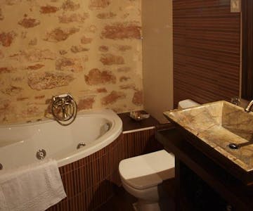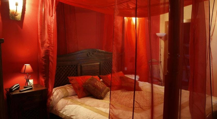 La habitación más amplia de la posada, con colores calidos y románticos está situada en la primera planta, tiene cama magnum con dosel, baño completo con bañera de hidromasaje y vistas a la montaña desde su balcón.